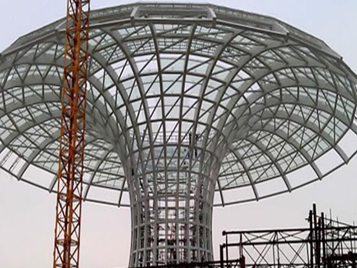 二、球形网架结构因其结构新颖,受力合理,自重轻、用钢量低等优点。如大型体育场馆球形海北螺栓球网架、公共场馆球形网架、电厂海北螺栓球网架、水泥工业球形网架、仓储物流球形网架、海北干煤棚工业球形网架、海北收费站海北加油站球形网架、展览中心、影剧院、商场、航站楼、候车厅、工厂海北车间、仓库、电视塔等球形螺栓球节点网架。国内球形网架结构主要分为:海北焊接球节点网架及螺栓球节点网架两种。螺栓球节点网架其构件工厂内加工量较大,现场安装便捷,适用于现场工期紧,海北施工条件、用电量受制约,网架形状复杂、海北杆件定位困难的异形结构。螺栓球节点球形网架系统基本由海北杆件、螺栓球、支撑支座等组成。按照节点形式可分为交叉海北桁架体系、四角锥体系、三角锥体系等。支撑方式多为固定支座支撑。对于大面积、大跨度及有特殊受力或伸缩要求的网架结构可采用橡胶支座、滑移支座、球铰支座等支撑形式,以满足结构自身的受力稳定、均衡,便于内力释放等设计要求。